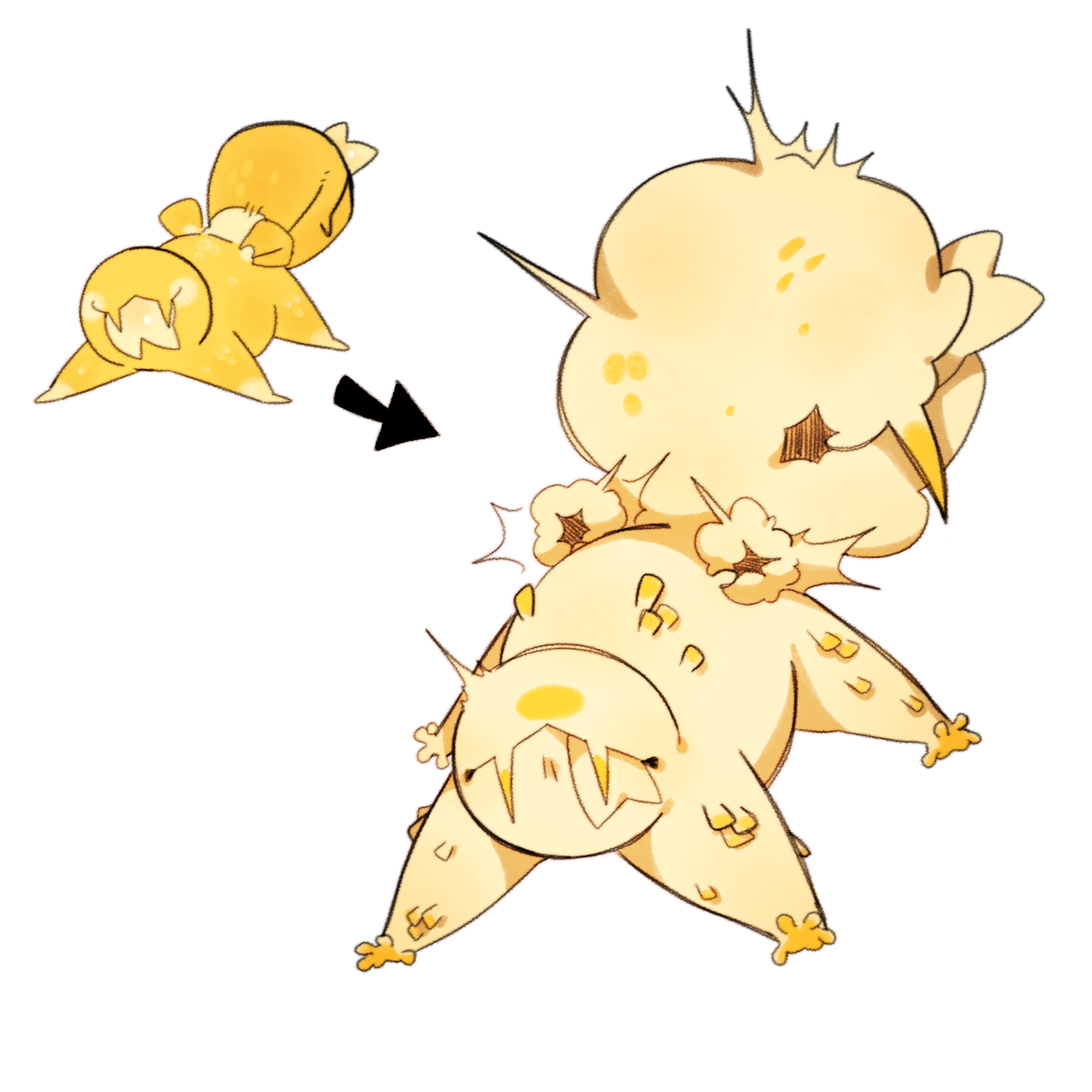 보통의 도마뱀과 유사한 몸체를 가졌으며 독니와 돌기가 자라지 않아 공격수단과 시각적 감각등이 아무것도 없는 상태입니다.
