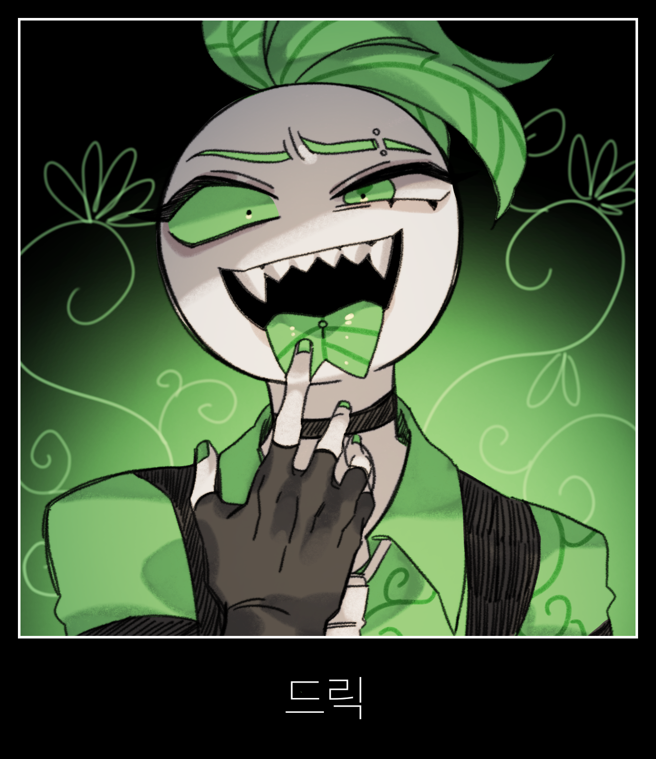 - 머리카락 대신 대마초로 보이는 식물이 자라있다. 자신도 이유를 알 수 없는 스트레스로 인해 더 이상의 식물은 몸에서 자라지 않는다고 한다. 평소 머리끈으로 묶고 있는 상태이다.
